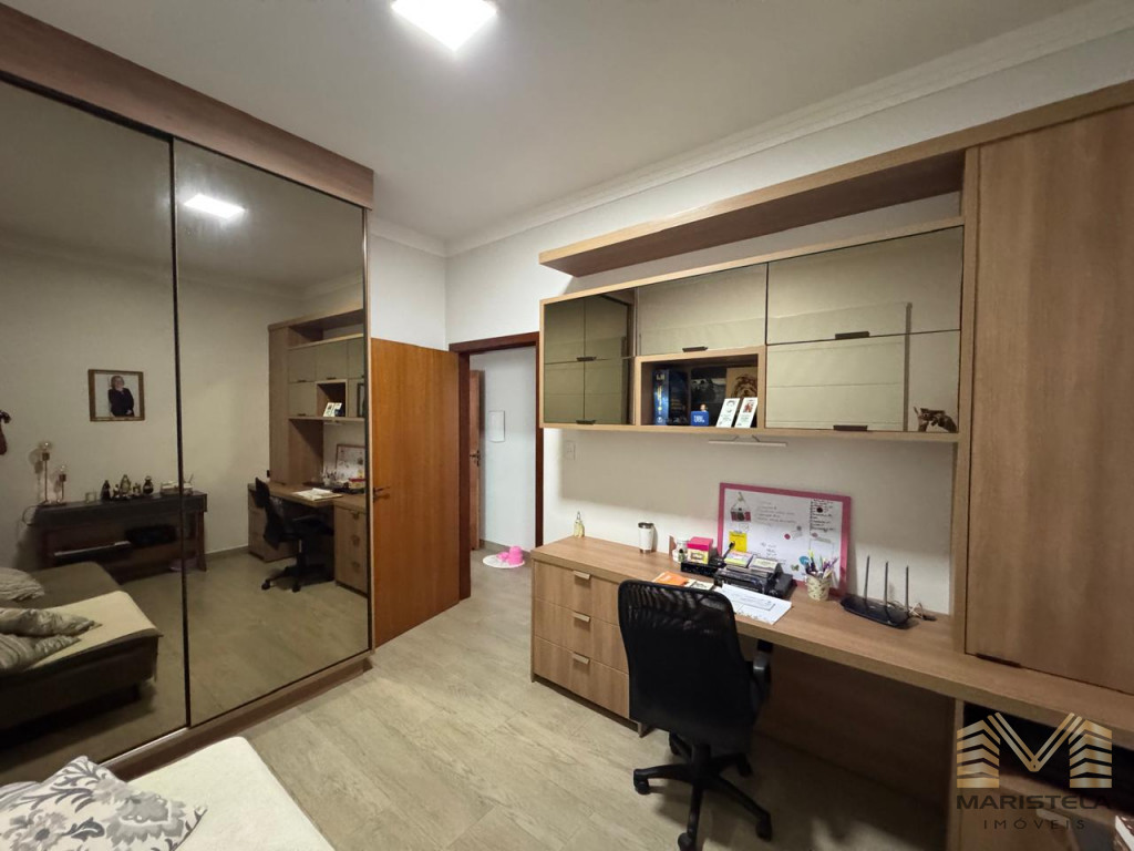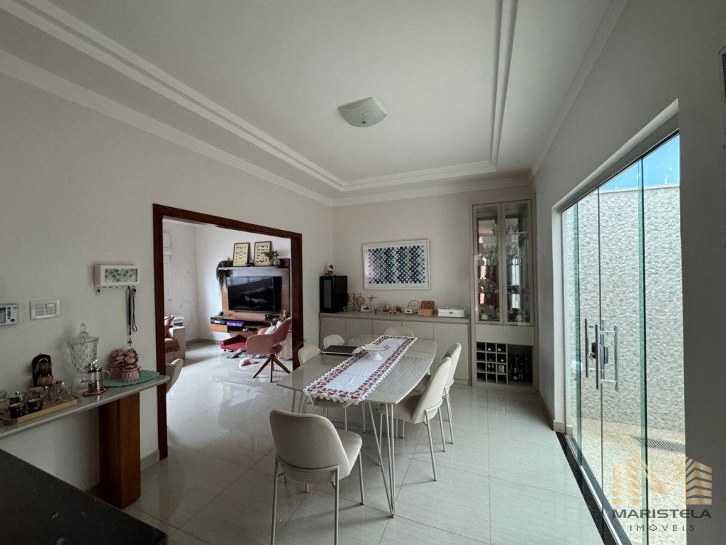 03 dormitórios, sendo 01 suíte com closet os outros 02 dormitórios com armários, sala, copa/cozinha com armários, garagem p/ 02 carros, despensa com wc e área de churrasco.