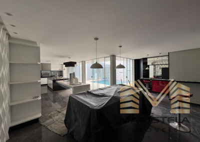 PAVIMENTO INFERIOR: COZINHA INTEGRADA COM AMPLA ÁREA GOURMET COMPLETA, INCLUINDO PISCINA.