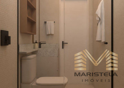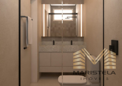 Com bancadas em granito,armários planejados,nichos no box ,espelhos instalados,box em blindex iluminaçao sobre a bancada em led.